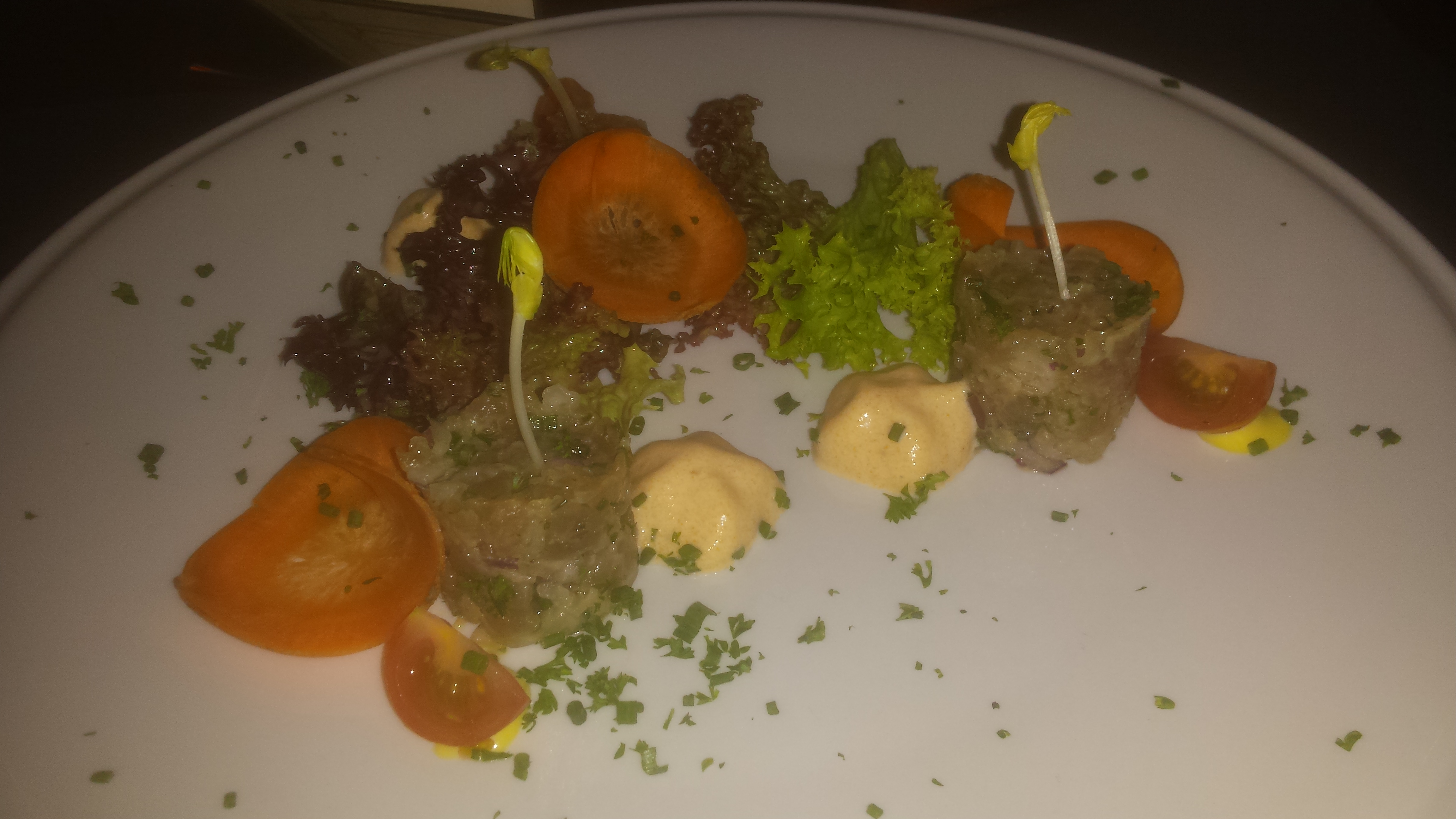 Ik koos voor een Tonijn tartaar, die erg mooi fijn was gesneden, vers en hoog op smaak was.