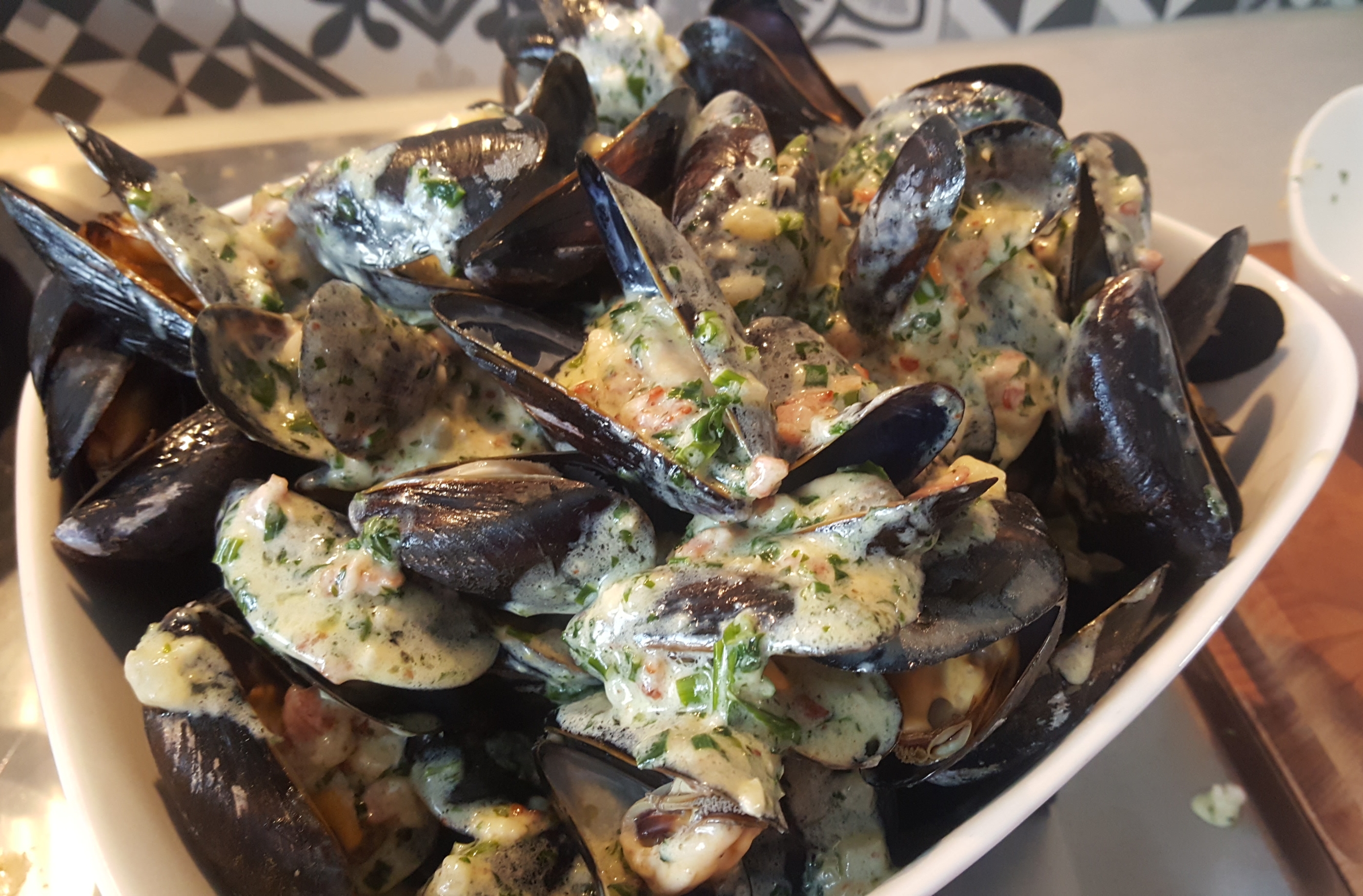 - Kook de mosselen en schep ze vanuit de pan over in een mooie schaal, giet de saus verdelend over de mosselen en aan tafel!.