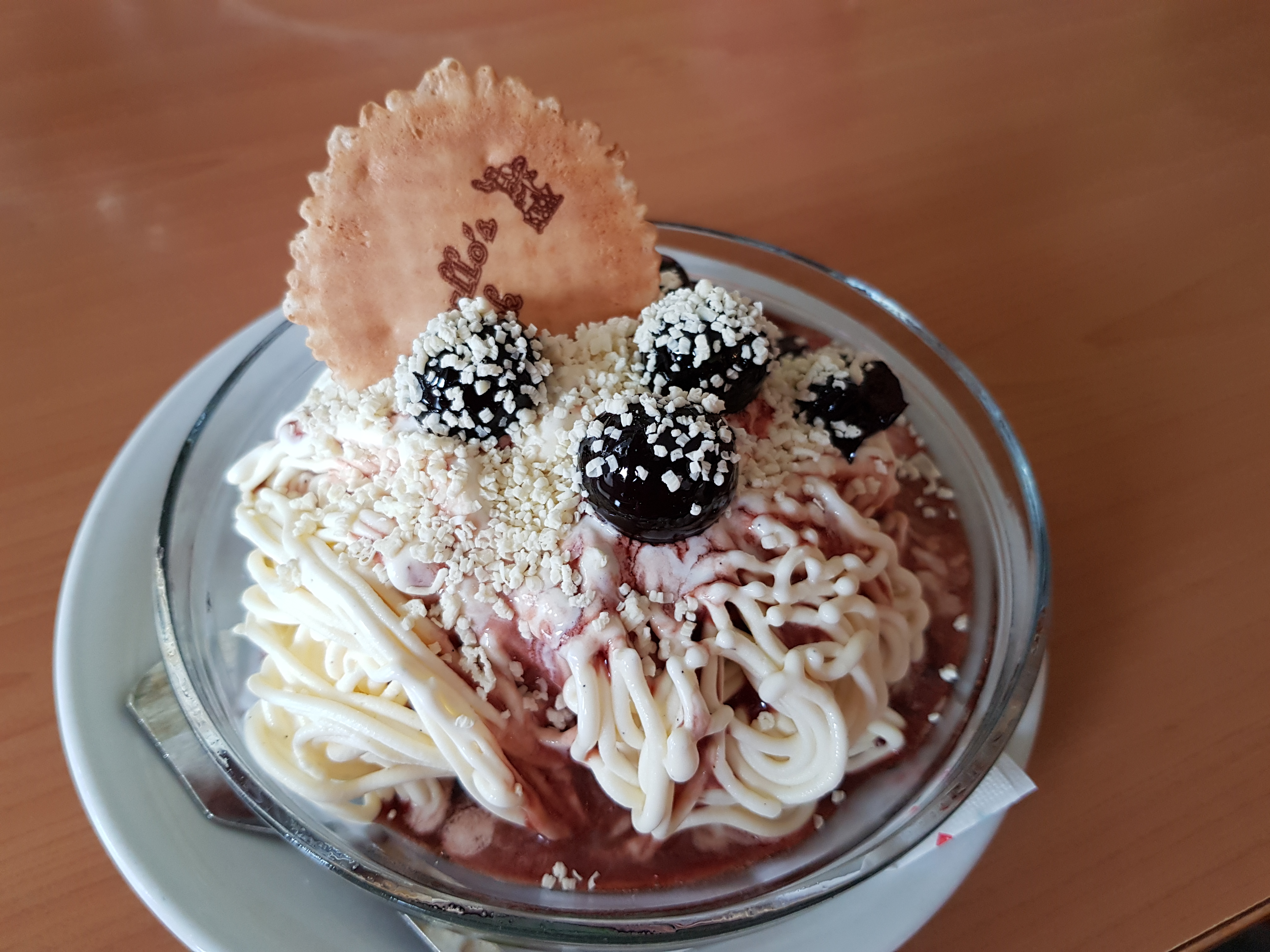 En dan afgetopt met die heerlijke Amarena kersen die ze hier hebben..