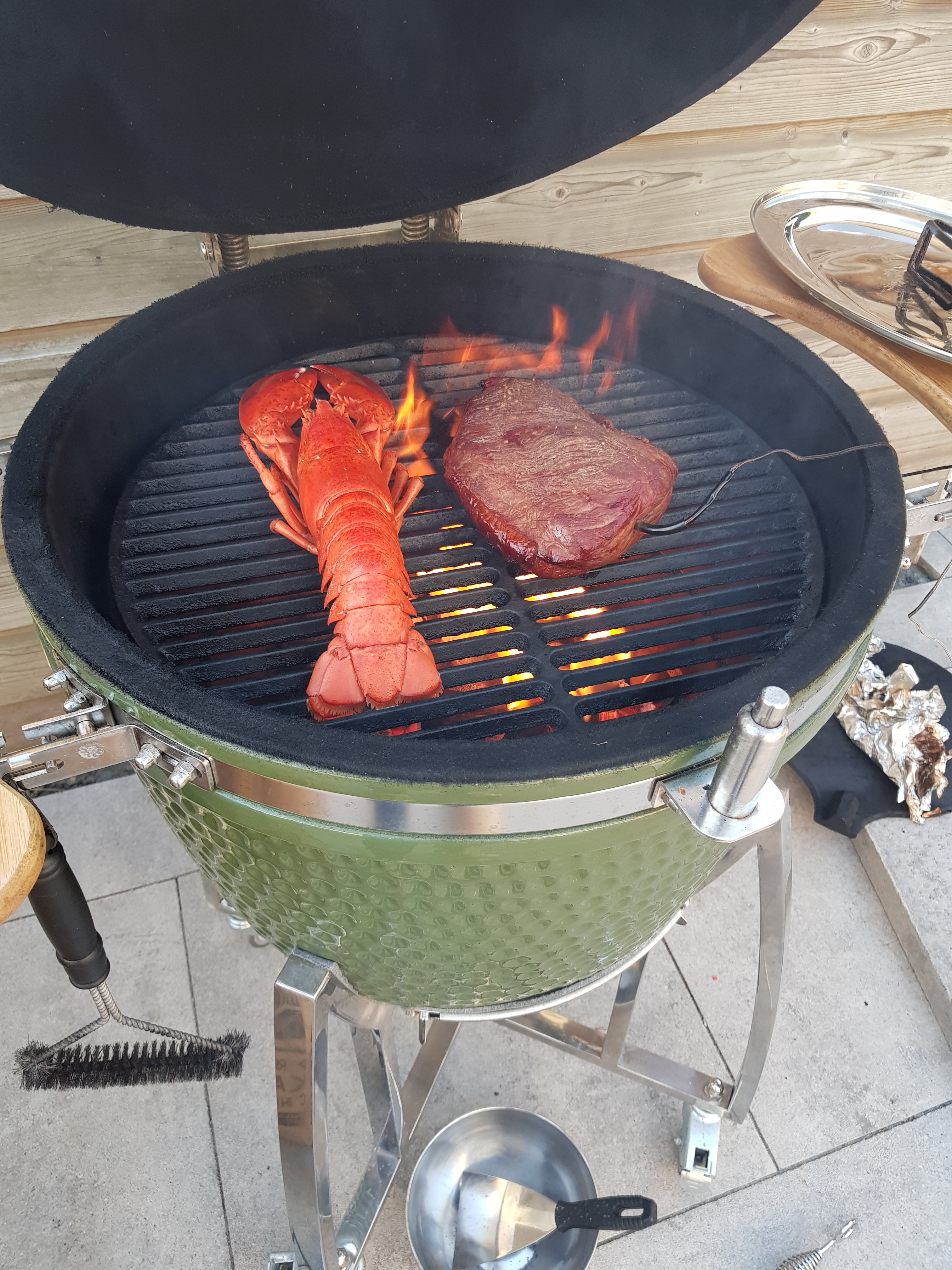 – leg de stukken kreeft een beetje aan de buitenzijde van je rooster op hun schild kant om ze nog even door te warmen indien de Picanha nog even de tijd nodig heeft.